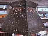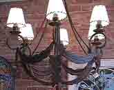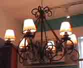 Our collection of unique lighting includes hand wrought iron chandeliers, table and floor standing candelabra and tin and glass wall sconces. Hand punched tin stars and hanging lamps create romantic patterns in gazebos and garden rooms.