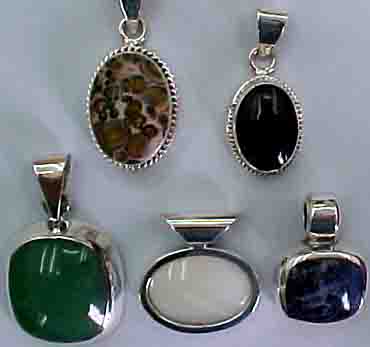 Natural stone and sterling pendants.