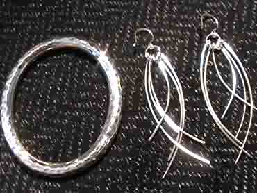 Hammered sterling bracelet and sterling earrings.